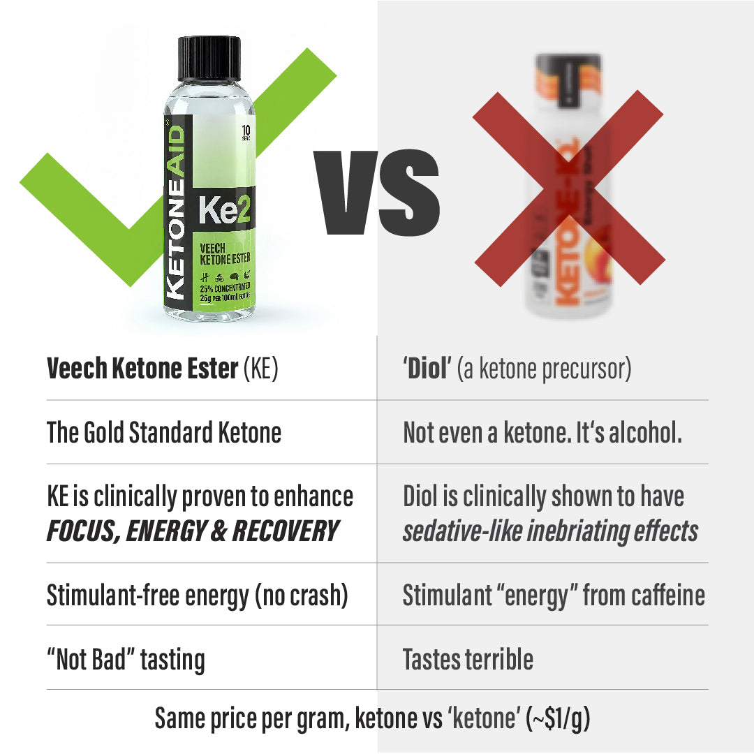 Some companies market “diol” (an alcohol-based precursor) using ketone ester research— even though it’s an entirely different compound.